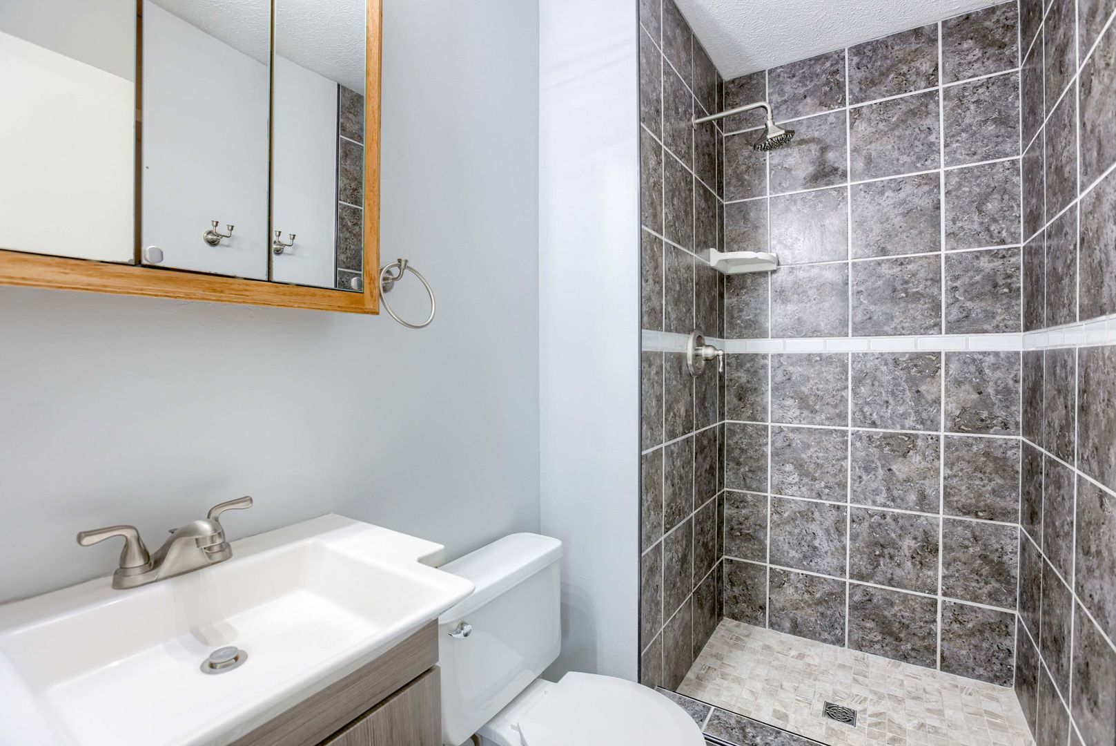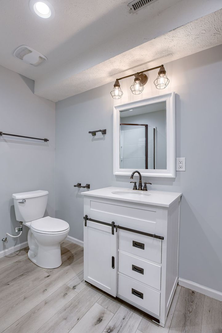 A finished lower level adds additional living space, offering flexibility for a second living area, recreation room, or home office.