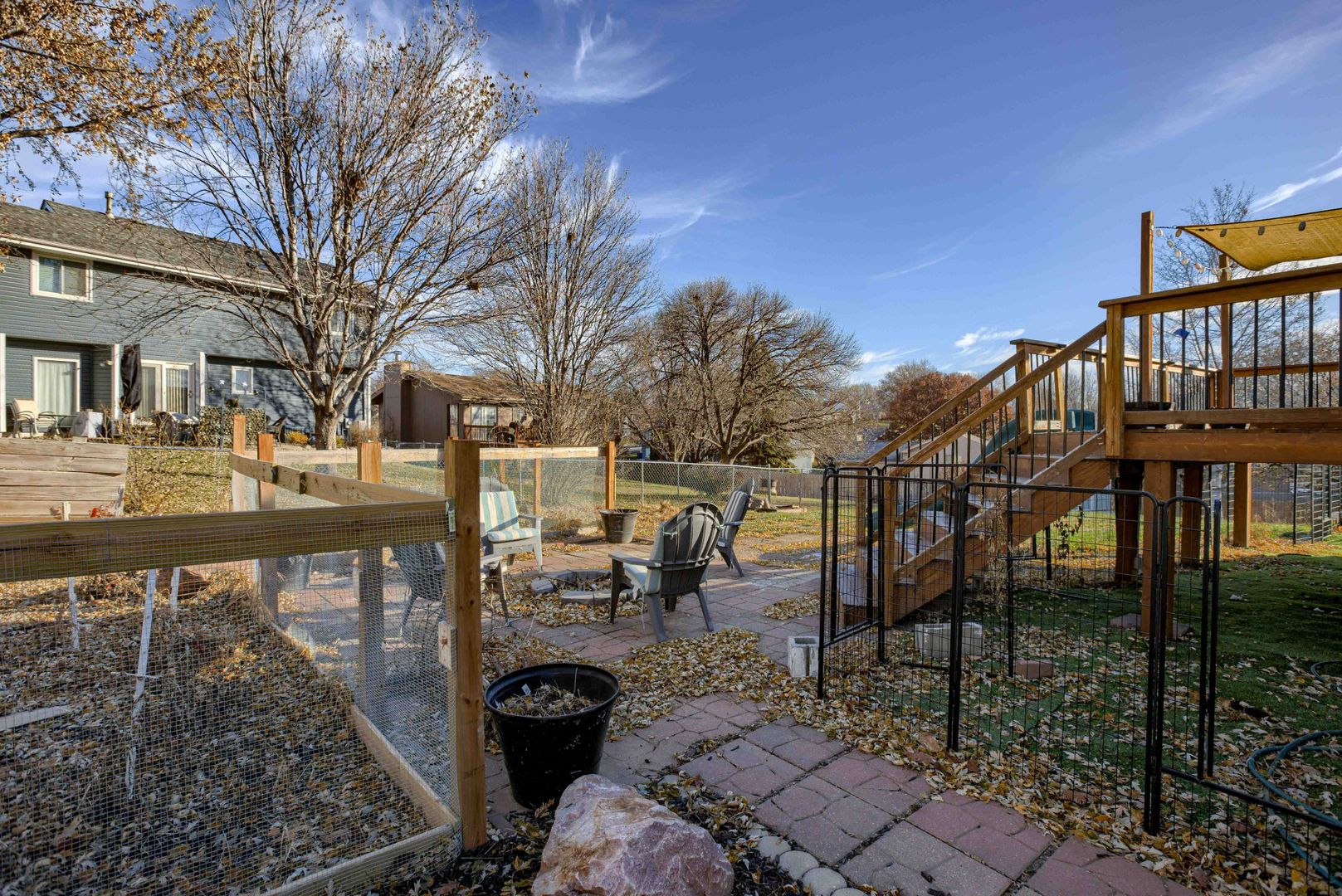 The dining area provides direct access to the deck, overlooking a fenced yard, a great setup for enjoying time outdoors. The primary bedroom includes a private en suite bath for added comfort and convenience.
