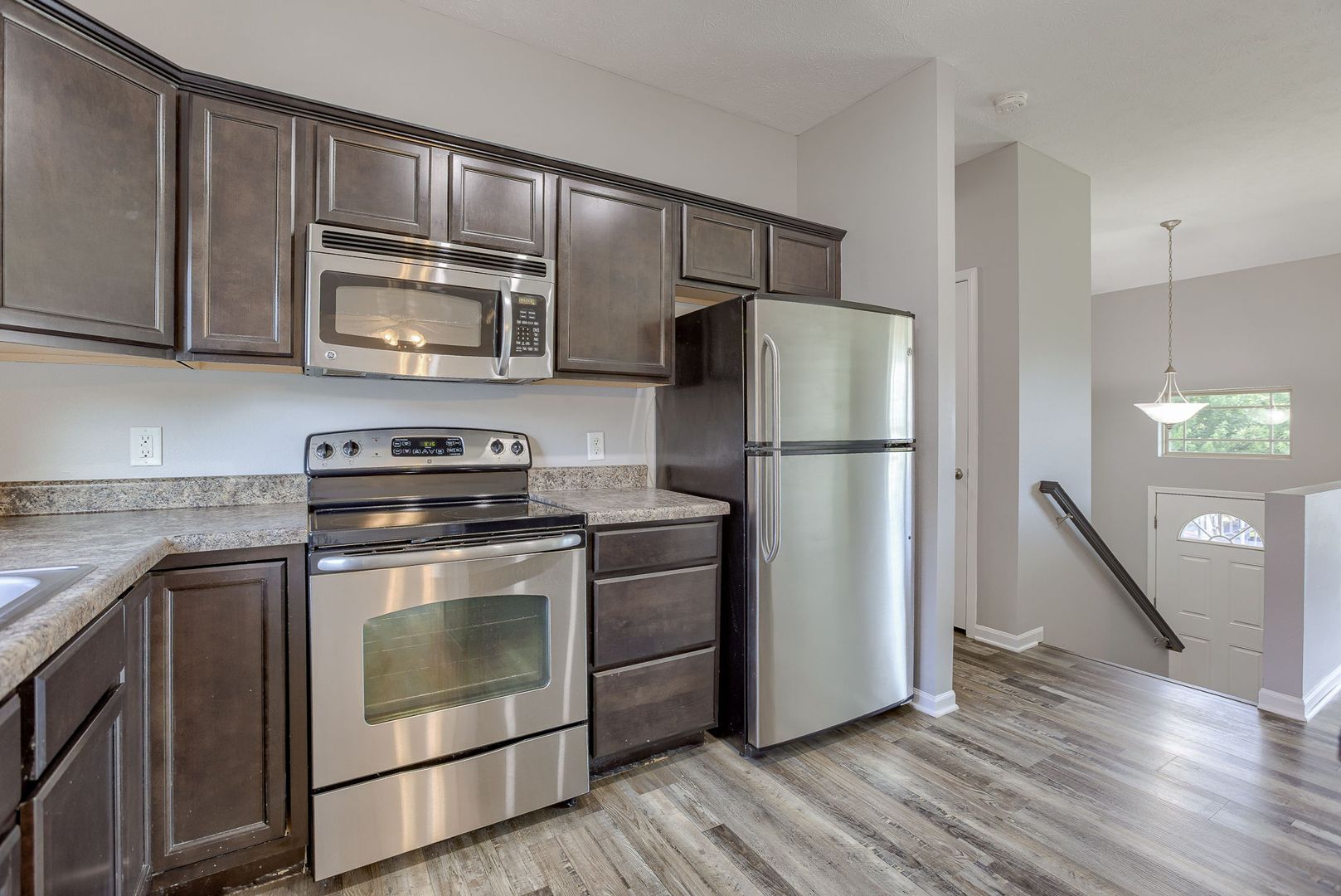 Boasting a spacious split entry design, the main level welcomes you with an airy open concept layout flooded with natural light. The well-appointed kitchen features stainless steel appliances and a convenient center island offering extra storage space.