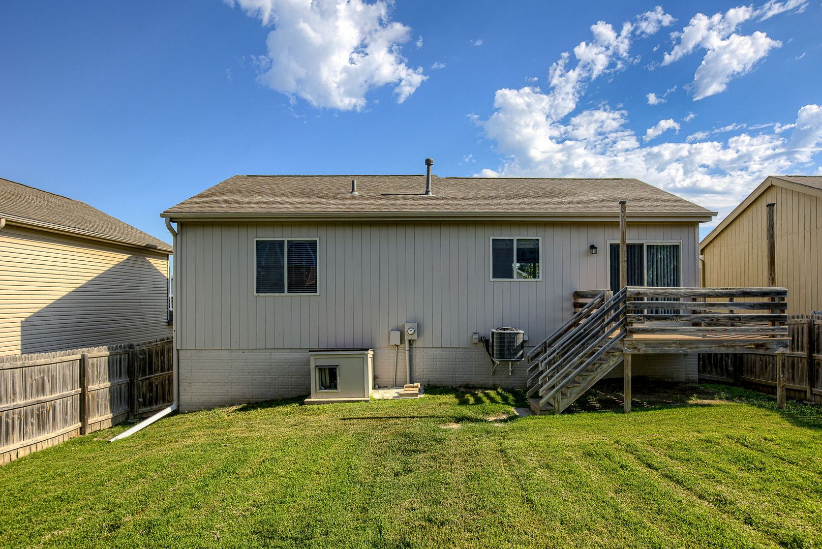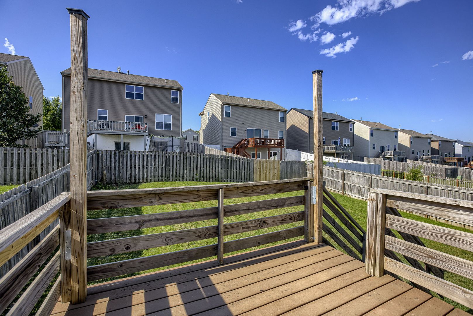 Outside, a delightful deck overlooks the expansive fenced yard, providing ample space for outdoor enjoyment and relaxation.