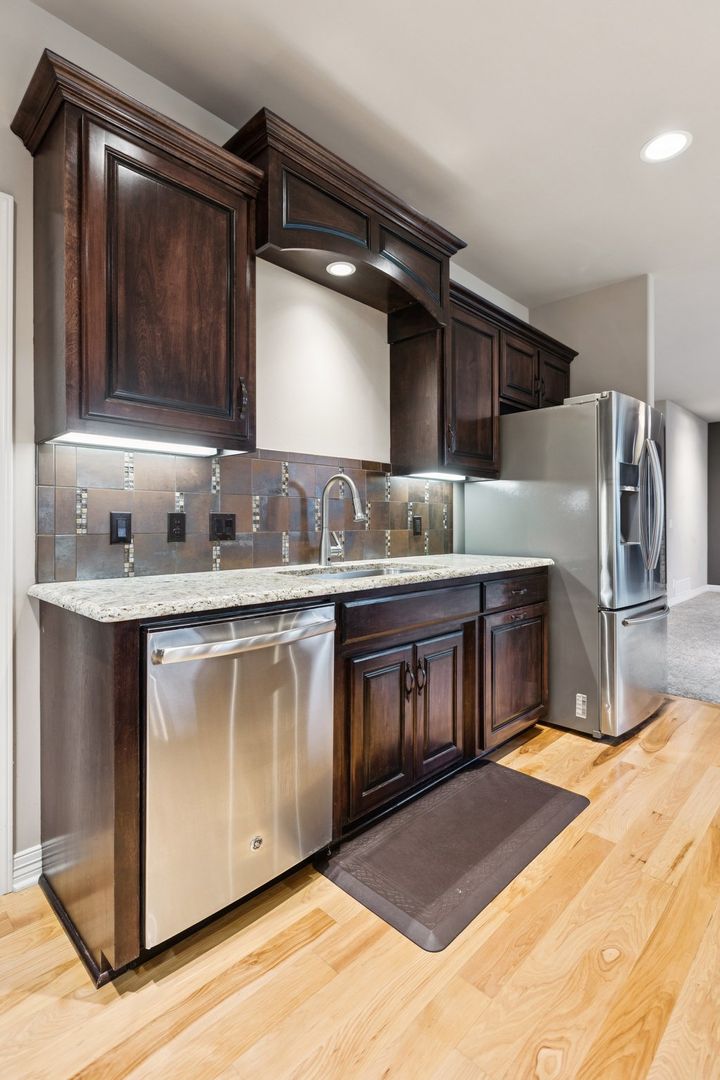 The finished lower level extends the living space even further, adding an additional bedroom and bathroom ideal for guests or a private home office.