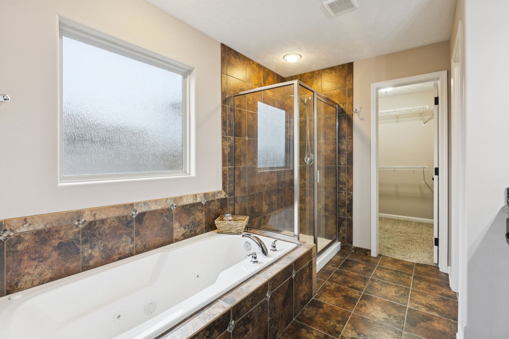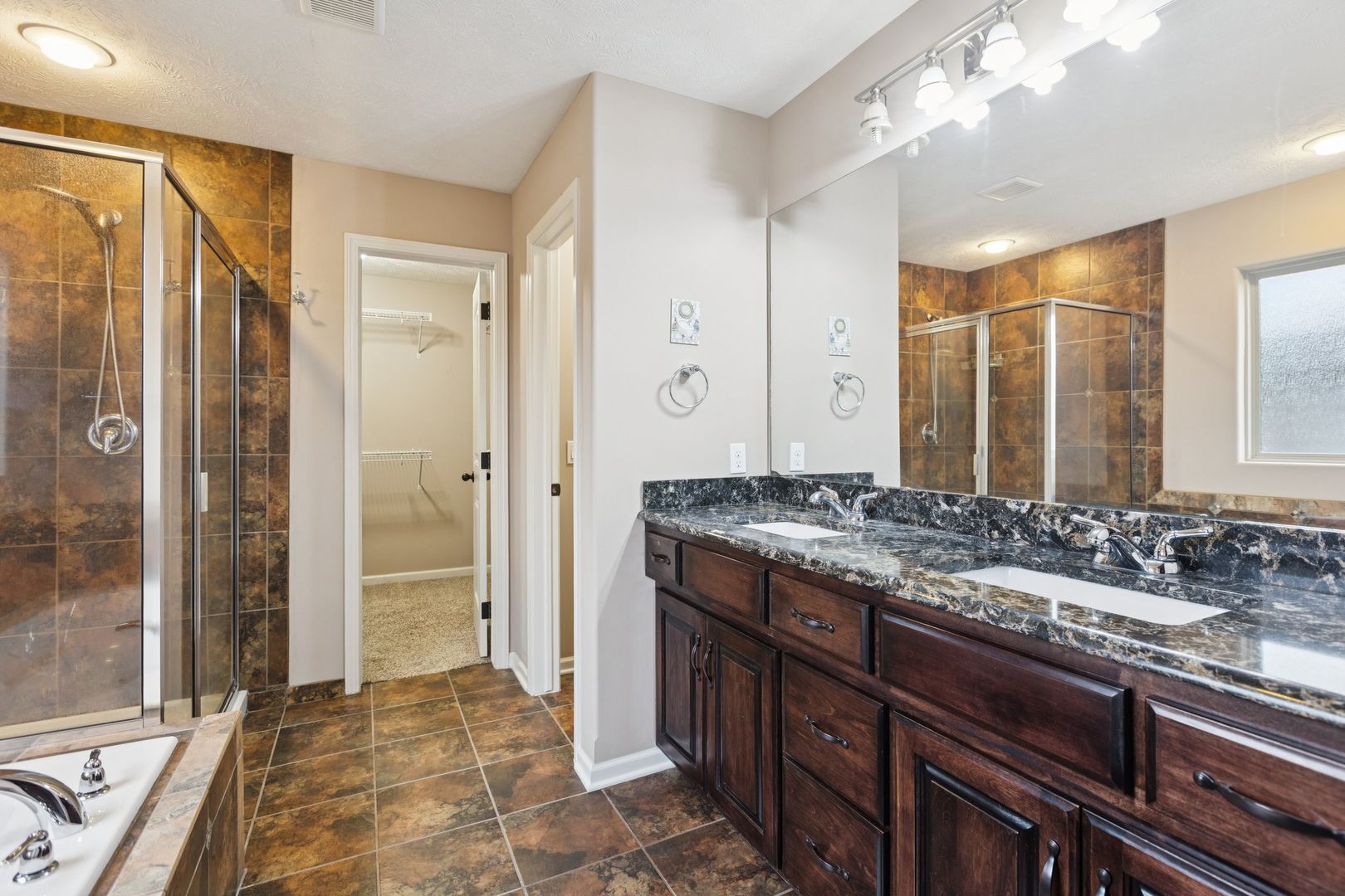 The generous primary suite offers a peaceful retreat, complete with a beautifully finished en suite bath featuring a dual-sink vanity and separate tub and shower.