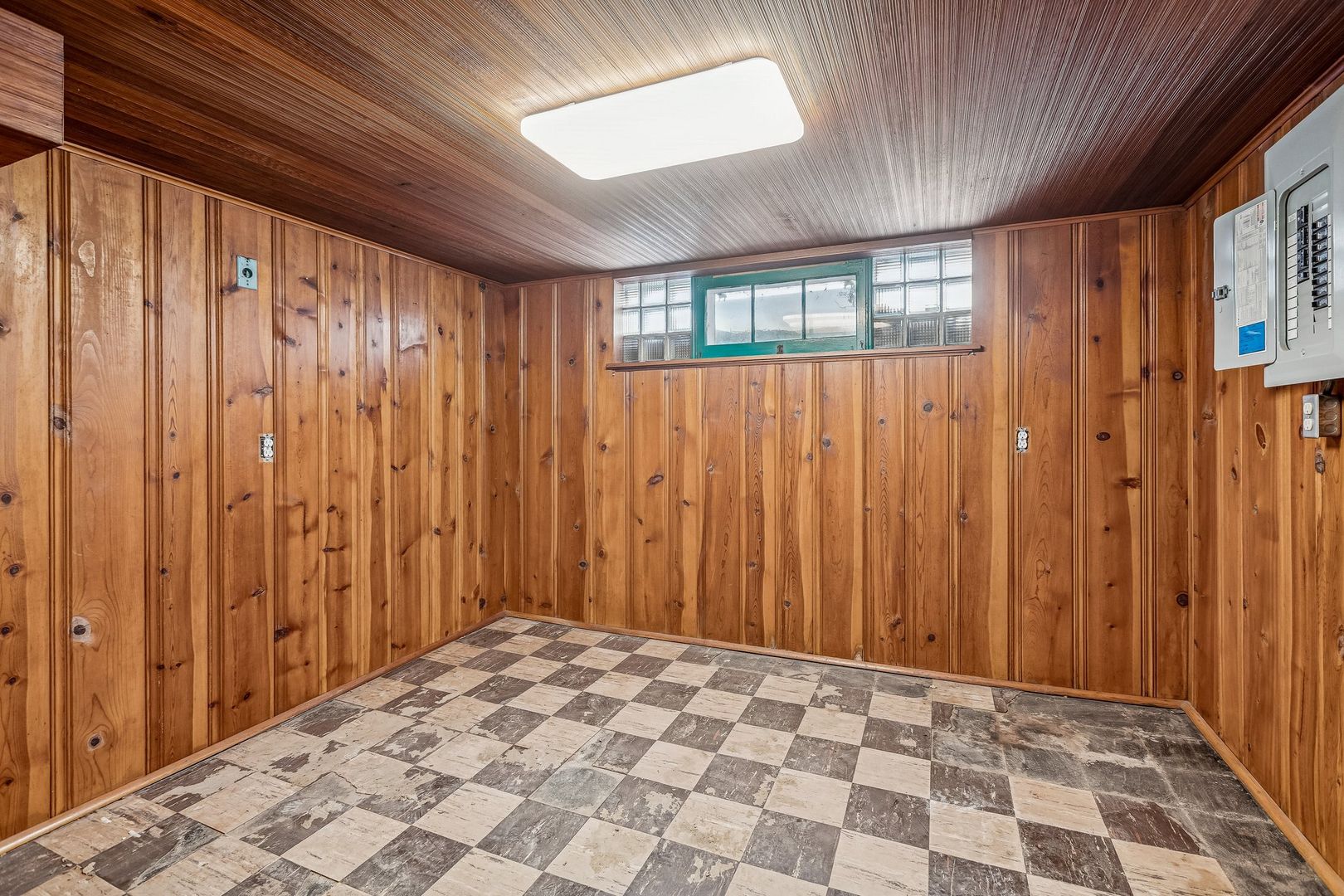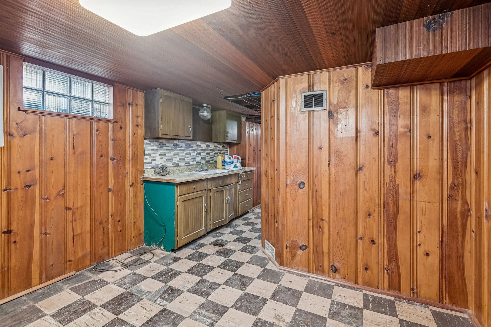 The large backyard features two storage sheds, including one with power, along with a covered patio that’s perfect for enjoying the outdoors in any season.