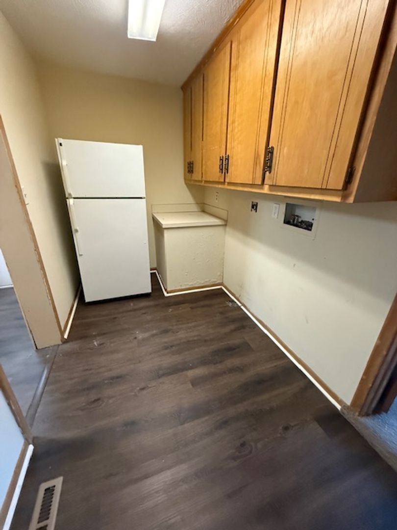The main floor also features a generous kitchen with an adjacent dining room, as well as a laundry room for everyday ease. An unfinished basement provides plenty of storage space.