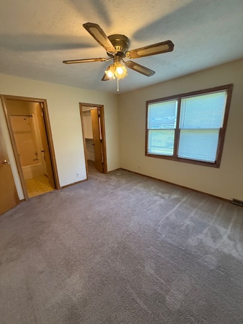 This 3-bedroom home offers a functional layout with the primary bedroom conveniently located on the main level. The spacious primary suite includes a large walk-in closet and a private attached bathroom. Two additional bedrooms are located upstairs, while a second full bathroom is found on the main level for added convenience.