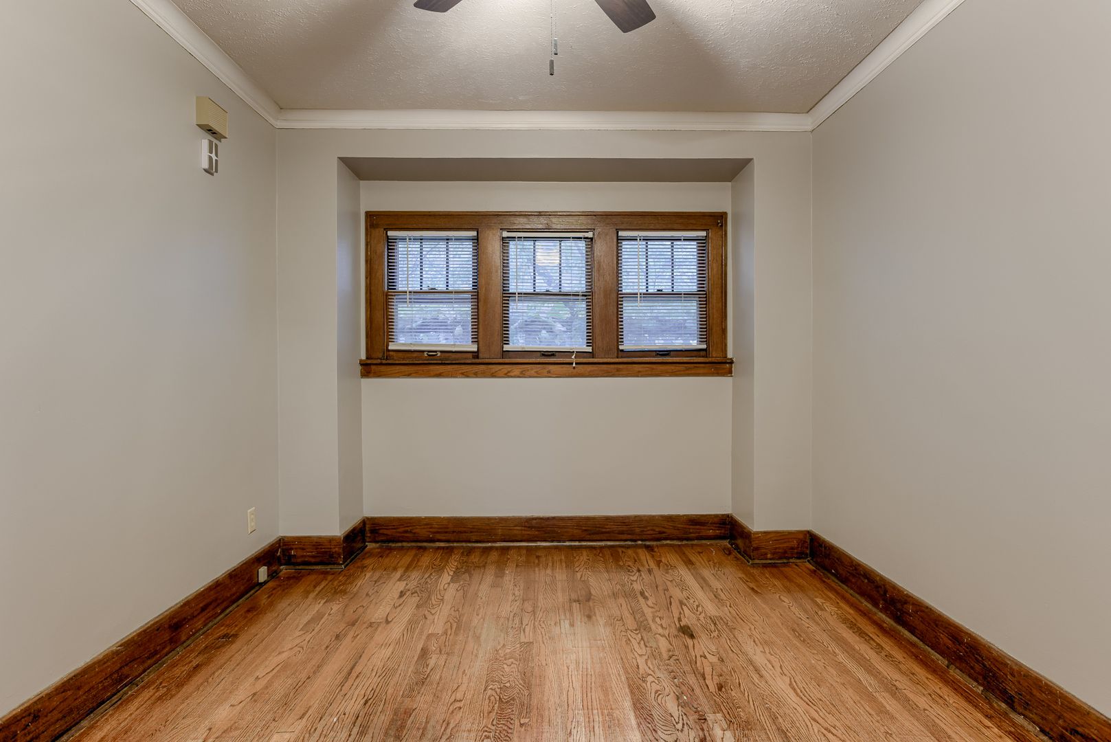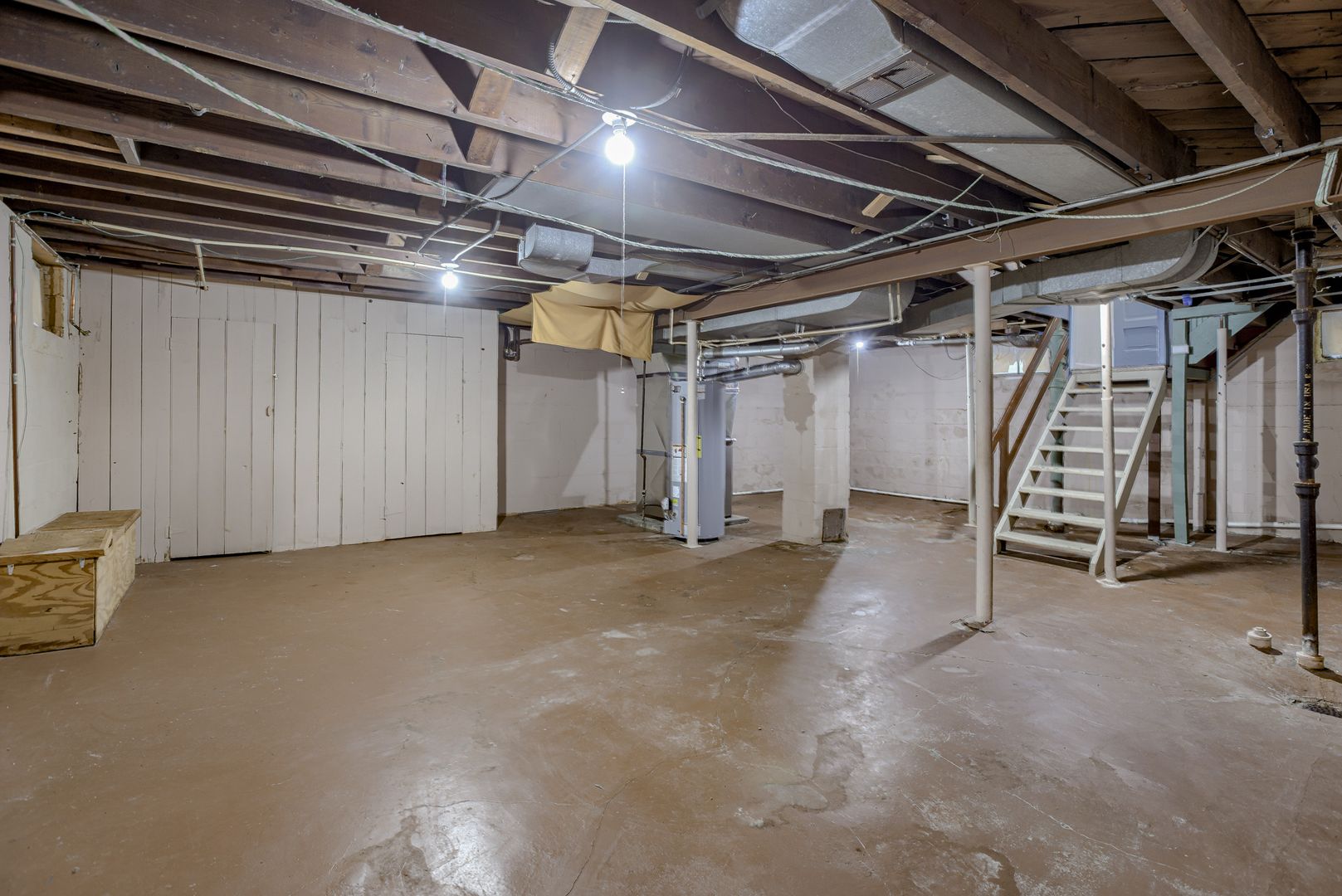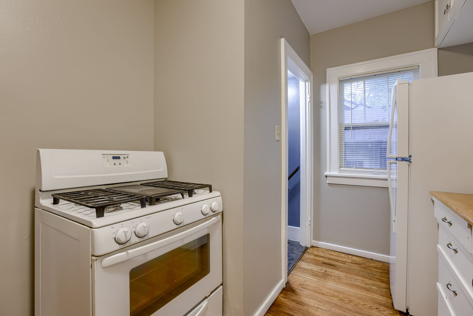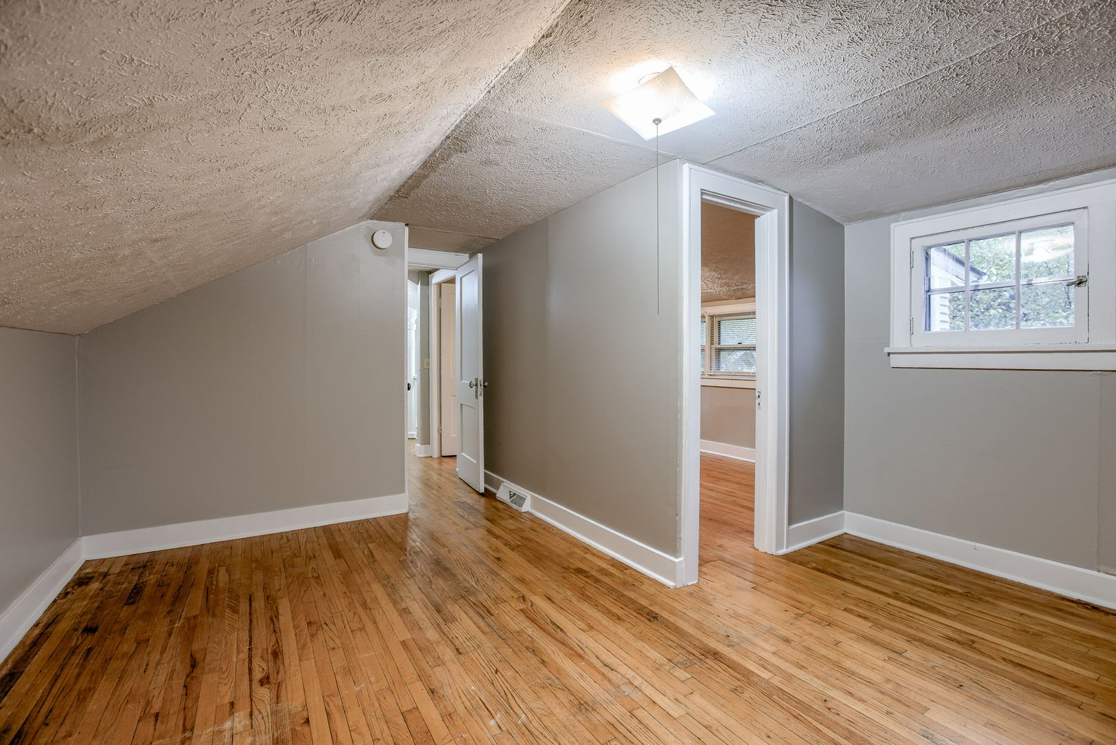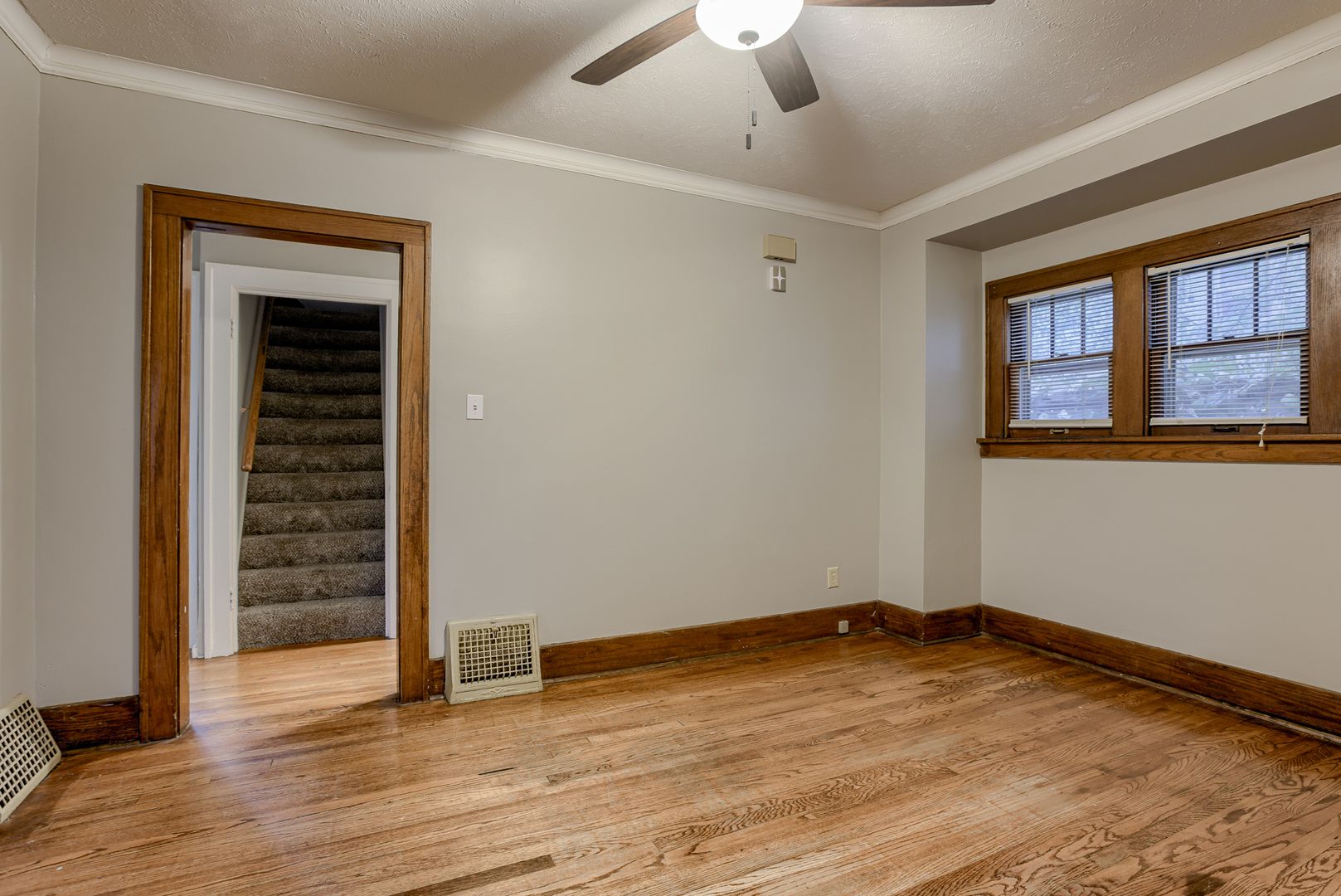 Hardwood floors throughout, an enclosed front porch, french doors, tall ceilings, and an updated bathroom! Detached garage with a large driveway. Plenty of usable storage space in the unfinished basement!