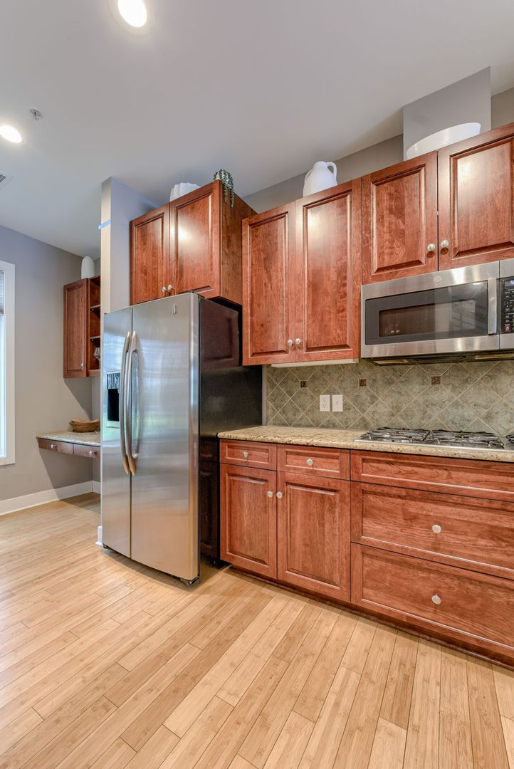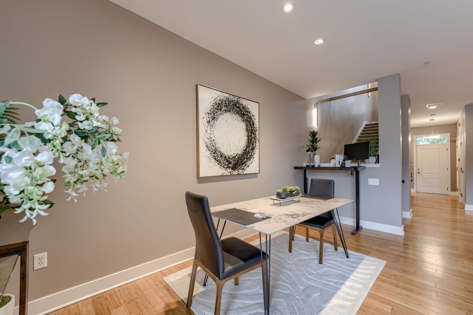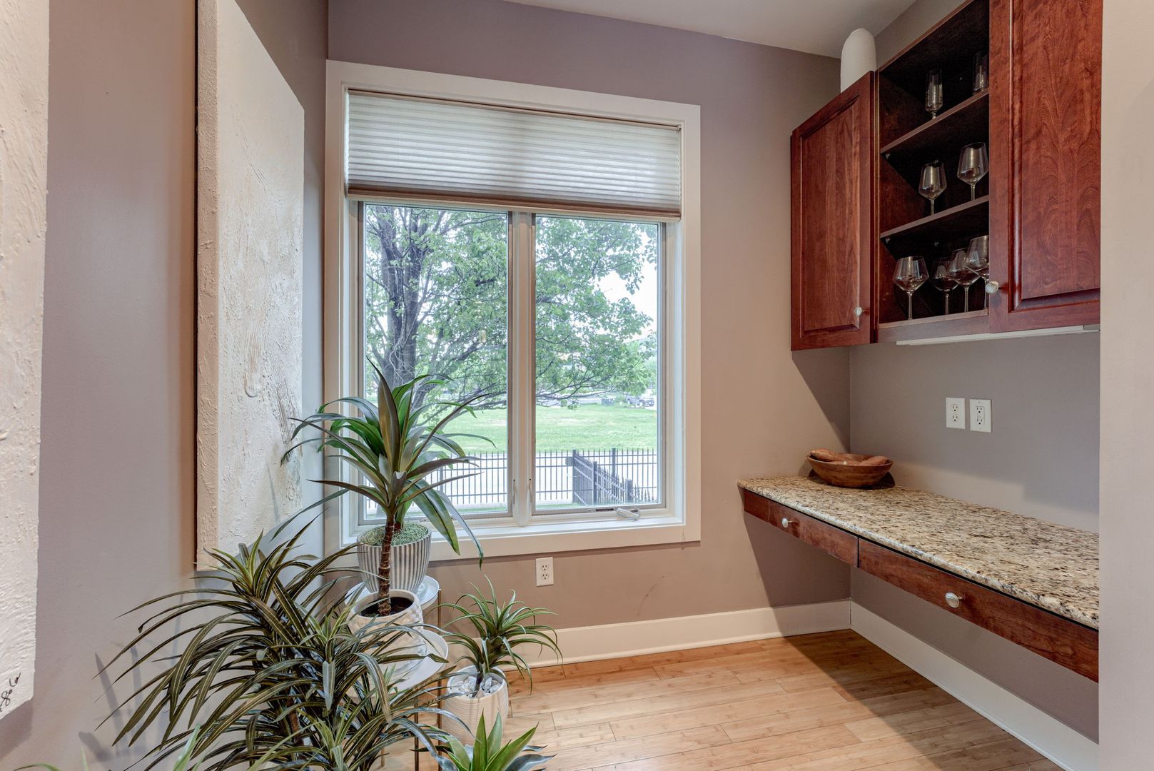 The main level offers a spacious, open-concept layout flooded with natural light, perfect for both everyday living and entertaining. The modern kitchen is thoughtfully designed with ample counter space and storage, plus a convenient corner featuring a built-in desk and additional cabinetry, ideal for a home office or organization hub.